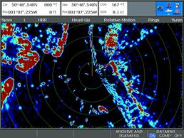 Displays fixed obstructions, floating nav aids, other vessels, severe weather, sea birds, and more.
